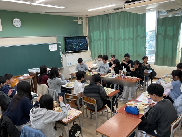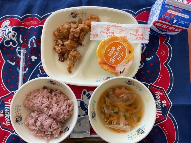 今日は、6年生にとって最後の給食でした。最後の給食のメニューは「お祝いすまし汁・鶏肉の唐揚げ・みかんゼリー・ごま塩・赤飯・牛乳」でした。子どもたちは、最後の時間を、とても楽しそうに過ごしていました。