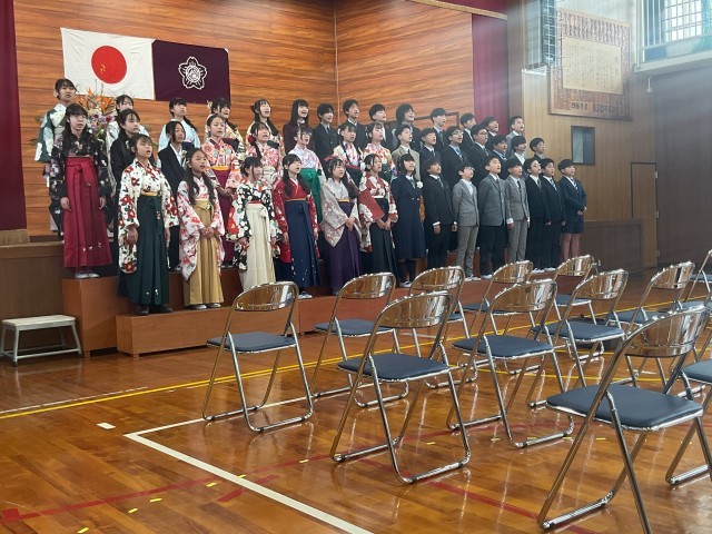 今日のお天気を実は昨日からとっても心配していましたが、保護者・地域のみなさまに見守られ、第69回卒業証書授与式を挙行することができました。証書授与の時には、卒業生の一人一人の笑顔や「おめでとう」に対する「ありがとうございます」の言葉がキラキラと輝き、堂々とした態度で受け取っていました。5・6年生のお別れのことばでは、心のこもった言葉の一つ一つに、きれいな美しい歌声に、とても温かい気持ちになりました。卒業生のみなさん、本当におめでとう!
