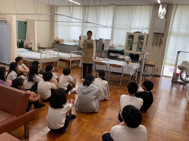職員室を出て、ふと保健室前を見ると、とっても美しく上ぐつがそろえられていました。本校では、昨日と今日、そして20日(月)に二測定を実施しています。保健室をろう下からのぞくと、真剣な様子で先生の話を聴いている6年生の姿がありました。周りの人を大切にする気持ちがあるからこそ、この並べられた上靴や聴く姿があるのだなとうれしくなりました。