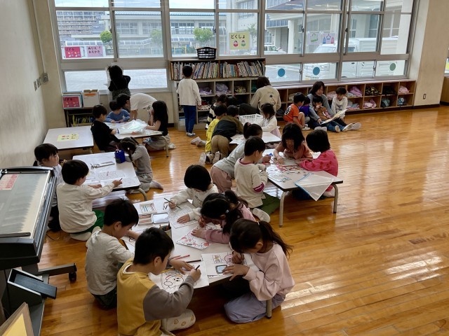 「4月10日(金) 「きらりたいむ」はたのしいな」で、幼保こ小連携架け橋プログラムのお話をしましたが、今日は、宮ノ阪サクラ保育園の先生方が取り組みの様子を見学に来てくださいました。これも、幼児教育と小学校教育の円滑な接続を目的とした取組です。