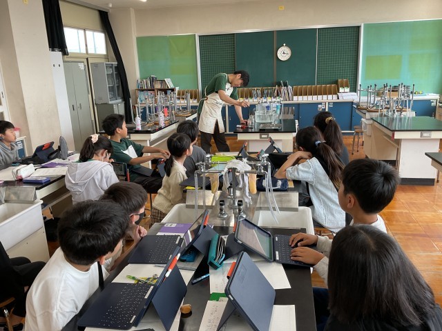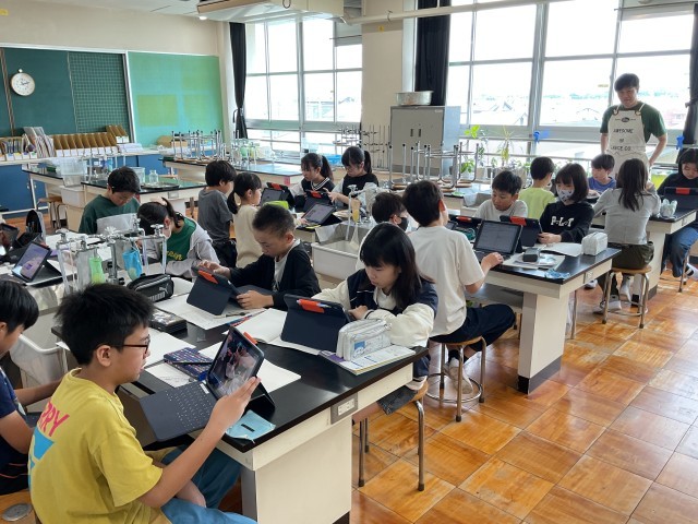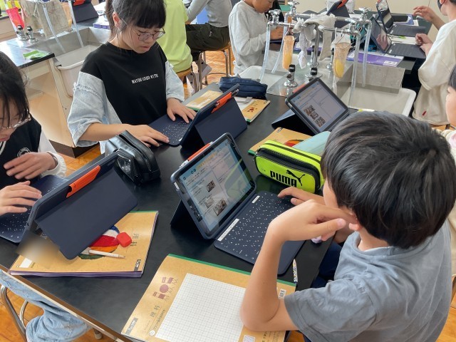 子どもたちは、実験の様子をタブレットで撮影していたので、その様子を何度も見返しながら、自分の考えをまとめていました。なぜ空気中では物が燃えるのか、そして物を燃やしている気体は何なのか、しっかりと理解している様子が伝わりました。
