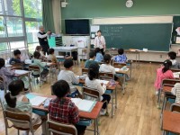 3時間目に警察官の方に来校いただき、「誘拐防止教室」を行いました。新型コロナウイルス感染症防止のため、警察の方が音楽室で演技やお話をしてくださる様子をmeetでオンライン配信し、その様子を1、2年生の子ども達は、教室のテレビで視聴しました。どのクラスの子ども達も静かに真剣にお話を聞いたり、質問に○×で答えたりしていました。