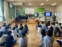6年生が理科の授業を教室で行っていました。地層の学習で標本を各班で見ながら、わかったことをタブレットのロイロノートに記入し、先生に提出していました。