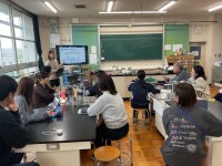 国語の言語活動で作成した「ワクワクハラハラカード」(←このネーミングも子どもたちが考えたものです。)を封筒に貼り付け、木になった本(封筒)を手にとって読んでもらいます。カードを読むだけでもとても楽しいです。