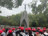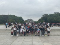 平和セレモニーの後は、原爆死没者慰霊碑の前で学年写真を撮影しました。その足で、広...