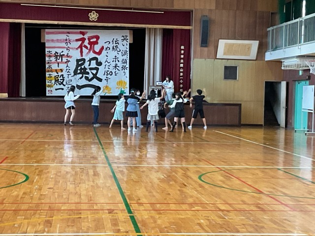 体育館では、6年生が運動会「ソーラン」の練習をしていました。