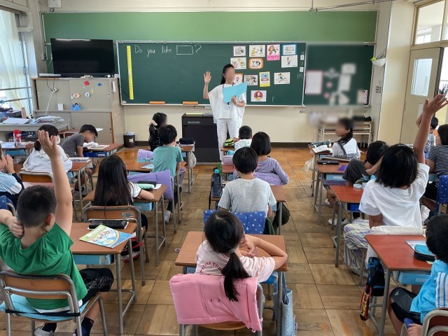 Do you like 〜?の学習をしています。友だちにたくさん質問したいとやる気いっぱいです。また、自分が聞かれた時、何を答えようかもしっかりと考えることができていました。