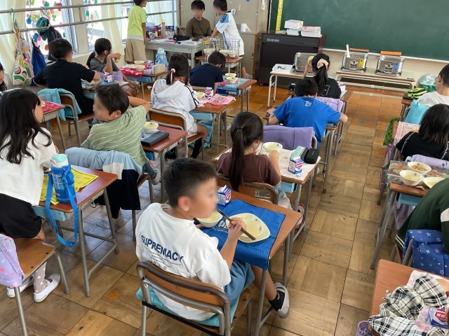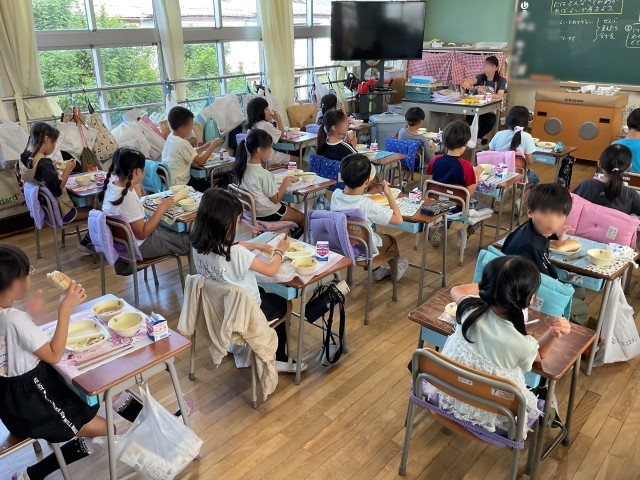 運動会の練習でからだをたくさん動かしたので、おなかが空いたようです。モリモリ食べて元気を取り戻しましょう。