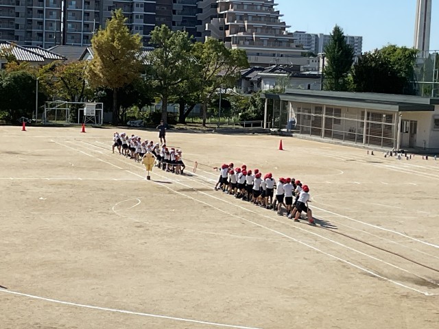 綱を引く時の児童の声が、教室棟3階まで聞こえていました。
