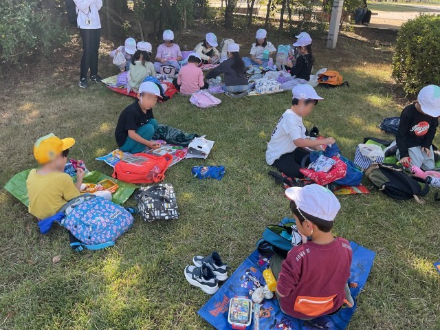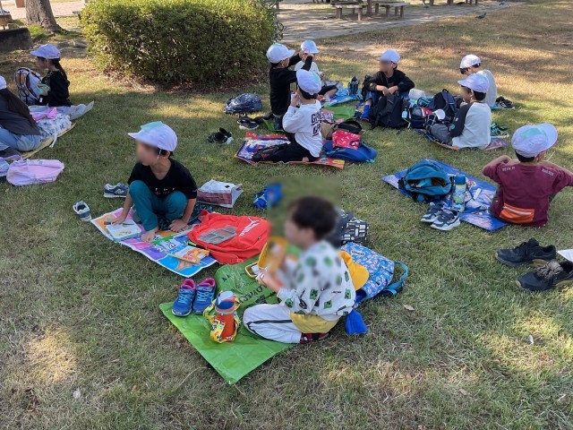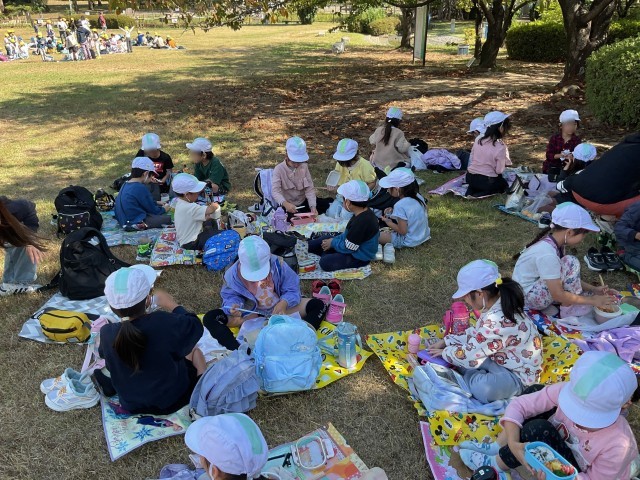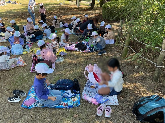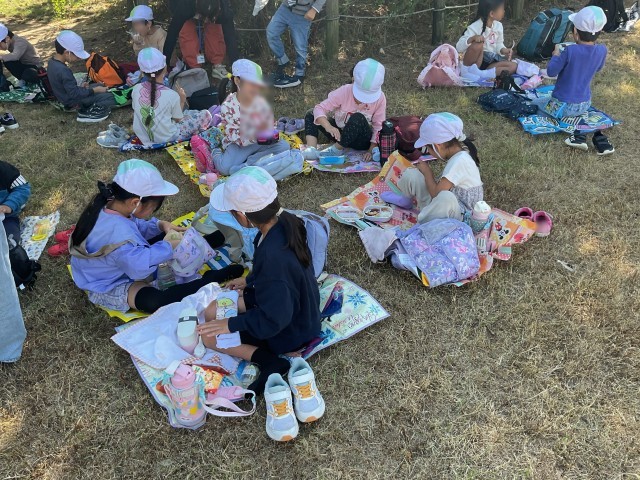 体をいっぱい動かしたのでおなかぺこぺこです。美味しいお弁当をいただきました。