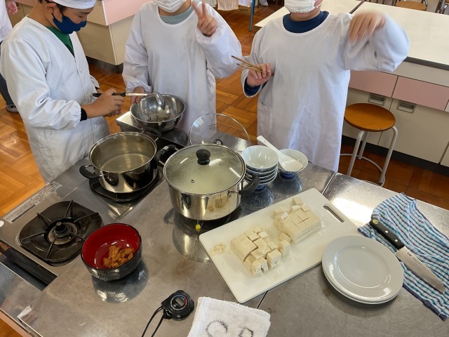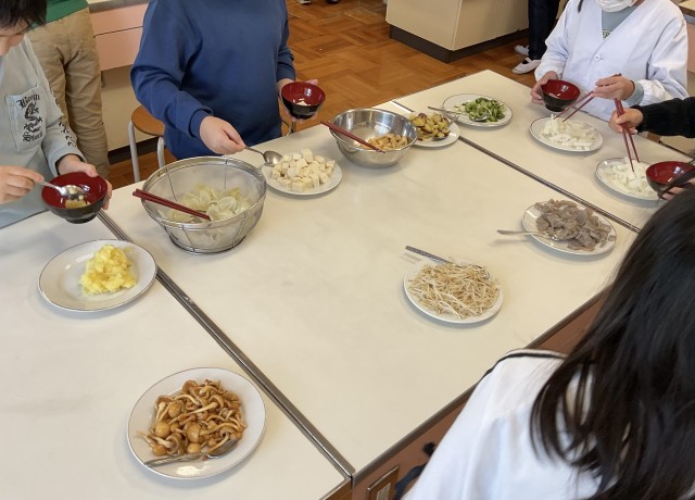 児童は、自分たちで準備した食材を使った調理実習に一生懸命に、楽しそうに取り組んでいました。
