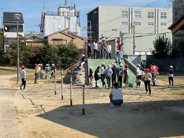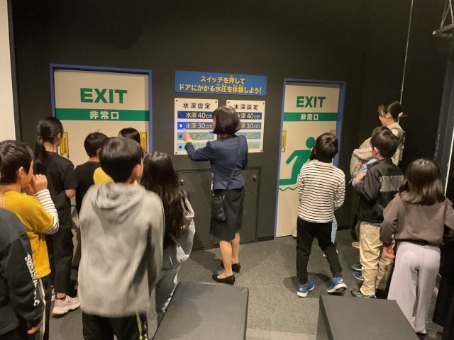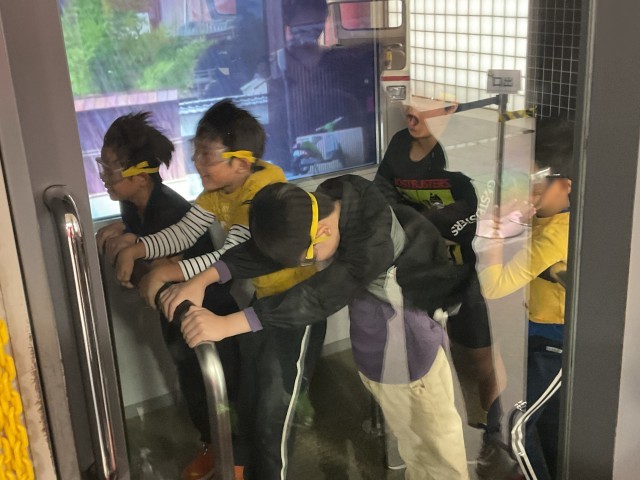 10月30日、4年生が京都市民防災センターへ校外学習に出かけました。都市型災害のお話で、地下街にいるときに大雨が降り、地下に雨水が流れ込む怖さを知ることができました。また、強風体験、地震体験など、実際の体験を通して災害について考えることができました。その後、近くの公園でお弁当とおやつを食べ、時間まで遊具で遊んで楽しみました。