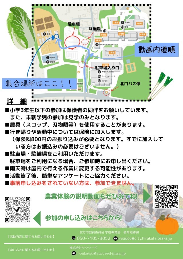 摂南大学より農業体験教室の案内がありました。新鮮な野菜の収穫体験をしてみませんか。
