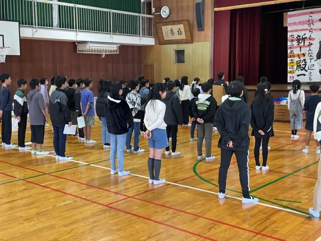 「ヒロシマの有る国で」の合唱の練習をしています。歌詞を一つひとつ噛み締めるように歌っている姿が印象的です。歌詞の内容を自分ごとに置きかえて「自分ができること」を考えて欲しいと思います。
