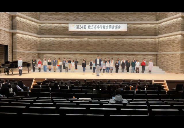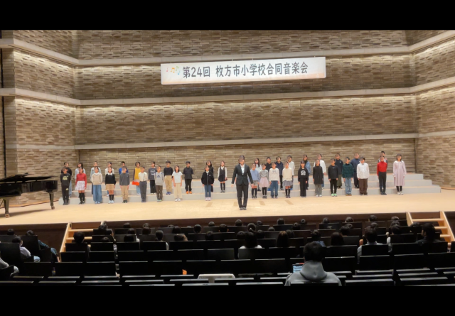 第24回枚方市小学校合同音楽会に参加しました。かわいらしさの中にたくましさを感じさせる歌声でした。練習を通して合唱の楽しさがわかって、どんどん上手になる様子が伝わってきました。