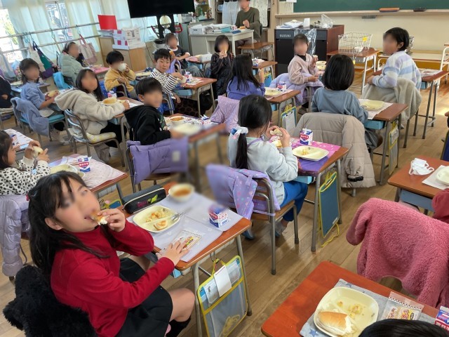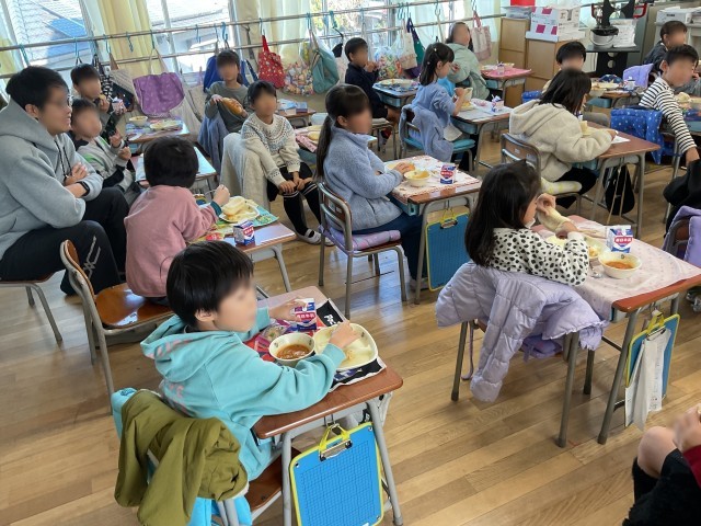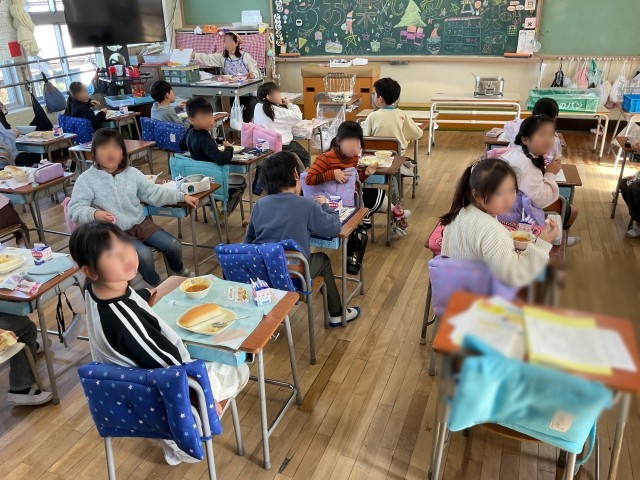 今日はクリスマスメニューのセレクトデザートの日です。チョコクレープ、スイートポテト、いちごゼリーから好きなものが選べます。ニコニコ顔の子どもたちでした。