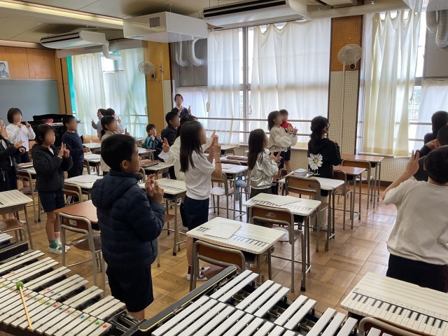 「ありがとうの花」の練習をしていました。歌うだけでなく手話でも表現しています。みんなを見ていると、やさしい気持ちで表現しているのがわかりました。