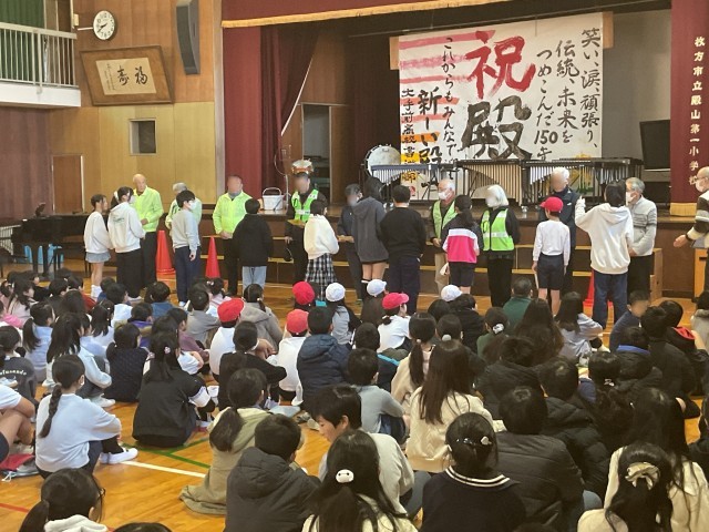 登校時や授業中に安全を見守っていただいている地域の方にお越しいただき、感謝の会を実施しました。子どもたちからお手紙を渡して、気持ちを伝えました。