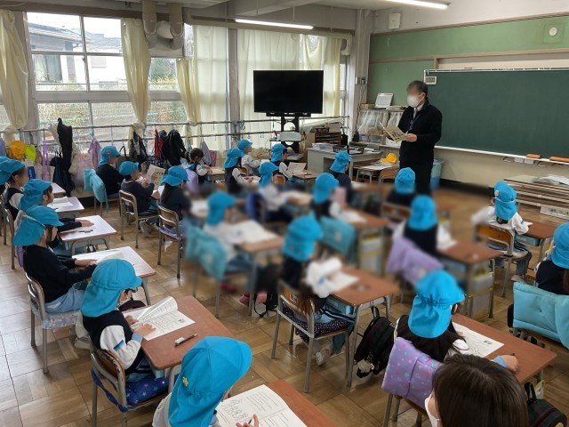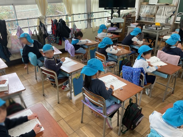 教室では、冊子に書かれている小学校でのお勉強について教頭先生から説明を受け、簡単な問題に挑戦していました。