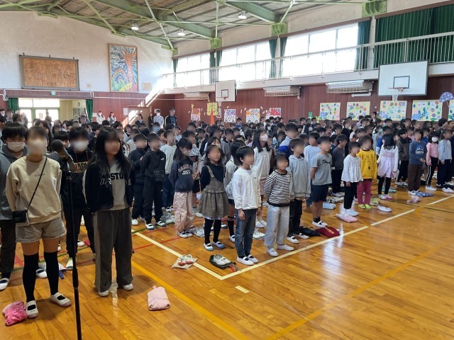 2年生以上の子どもたちと始業式を行いました。登校するとすぐにクラス分けが掲示してあり、自分の教室に入り、その後、体育館で行われる始業式が始まります。