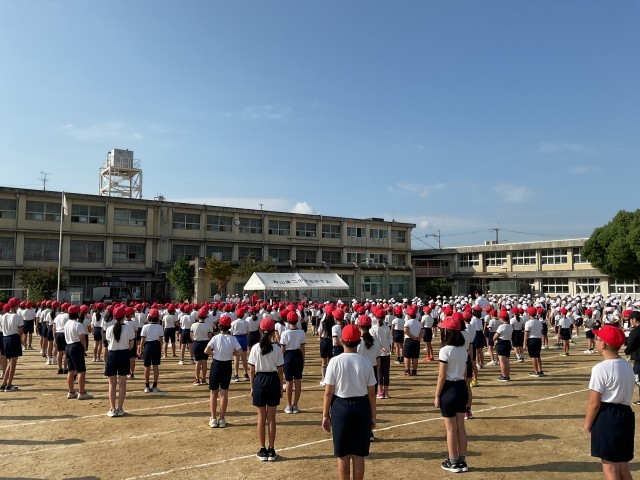今日の1時間目は、運動会の全体練習を行いました。開会式、応援合戦の隊形確認、退場の仕方の練習でした。1回目の練習ではありましたが、みんなスムーズに動いていました。私からは、谷川俊太郎さんの「かけっこ」という詩を紹介しました。そこから、順位も大切ですが、運動会という1つの目標に向かって、一生懸命に取り組んで最後までやり抜くことで「がんばる力」がついていてくるということが伝わっていればと思っています。これから、3週間の練習を通して、子どもたちは大きく成長していくことでしょう。どうぞ、応援の程、よろしくお願いいたします。