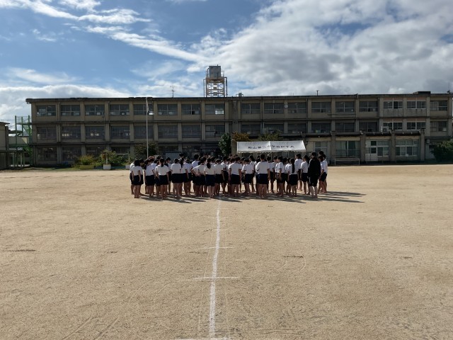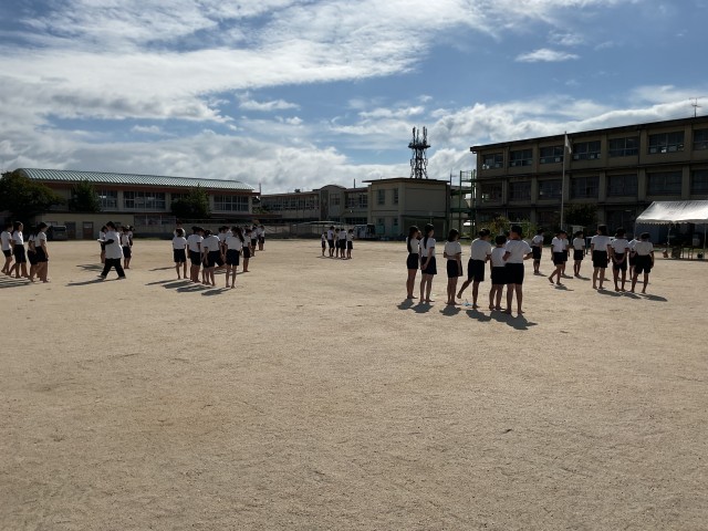 6年生が運動場に出て組立体操の練習を行いました。初めての運動場です。体育館と違うので、違和感はあると思います。残り2週間、全力で、安全に気をつけて、完成に近づけていきます。