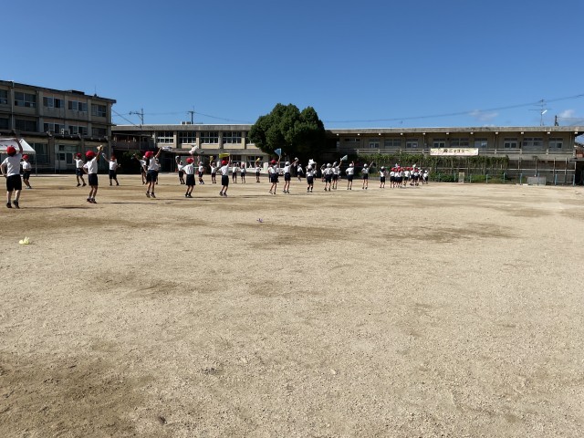 1・2時間目の運動場では、2年生がカラフルなタオルを持ってダンスの練習に取り組んでいました。風になびいたタオルは、とてもきれいでした。当日も、子どもたちの演技に合わせてカラフルなタオルがなびくところも見どころの1つです。