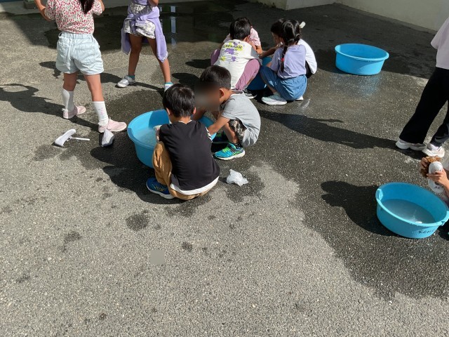 1年生が生活科の学習で上ぐつ洗いをしました。子どもたちに「お家で上ぐつ洗いはしているの?」と聞くと、多くの子が「しているよ〜。」と答えてくれました。きれいになった上ぐつが並んでいると気持ちがいいですね。上ぐつ洗いも含めて、お家でできそうなお手伝いがあればどんどん取り組んでほしいです。