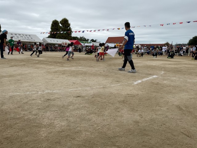 来年、1年生になる子どもたち等が一生懸命走りました。ゴールした子どもたちは、お菓子をもらってうれしそうな表情をうかべていました。