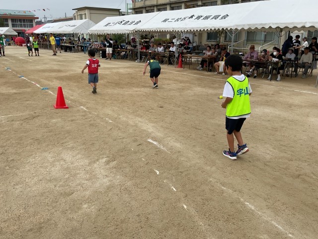 スプーンにゴルフボールをのせて50mを走ります。速く走るよりも、慎重に進むことがポイントのようです。