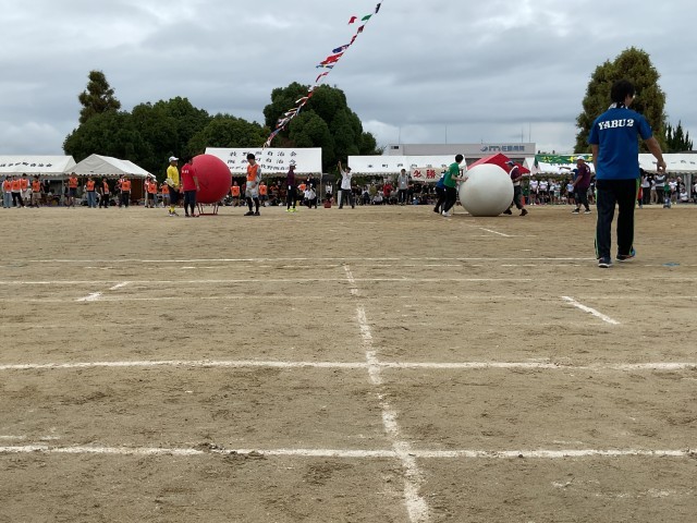 大玉ころころ、下から、上から。運動会でも取り組みます。楽しみですね!