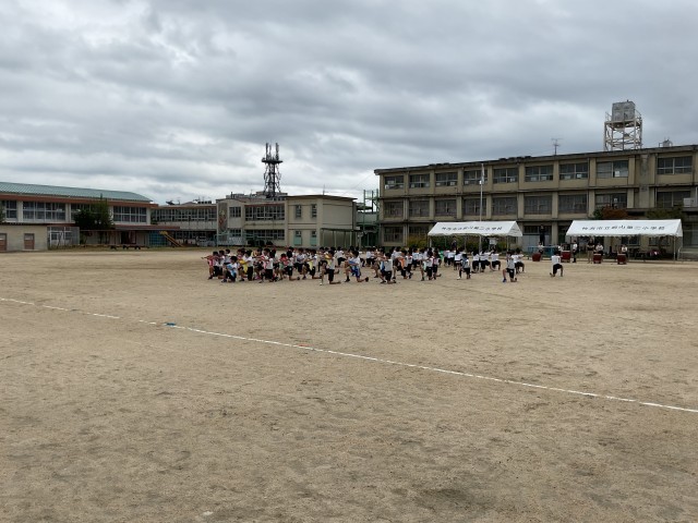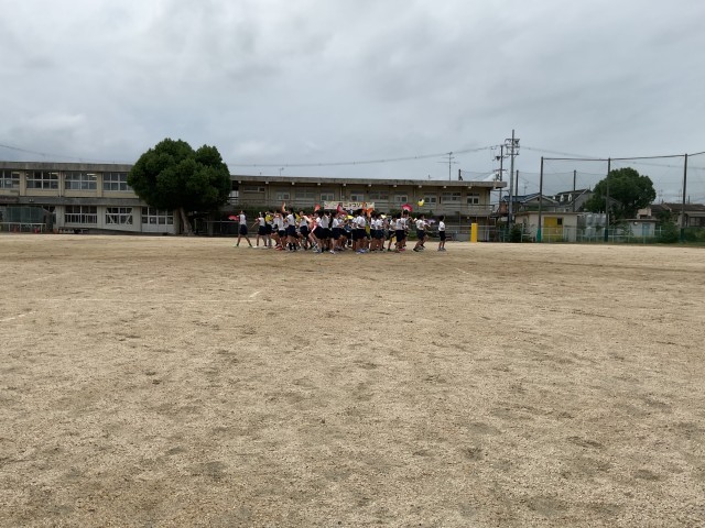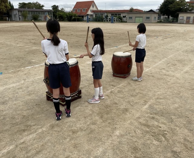 5時間目、雨が上がりました。ということで、4年生は運動場で練習をしました。1つ1つの動きを確認しながら最終の練習でした。和太鼓も取り入れて「御神楽」を踊ります。扇子も使うことで、動きがとてもきれいに見えます。