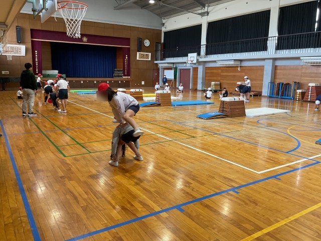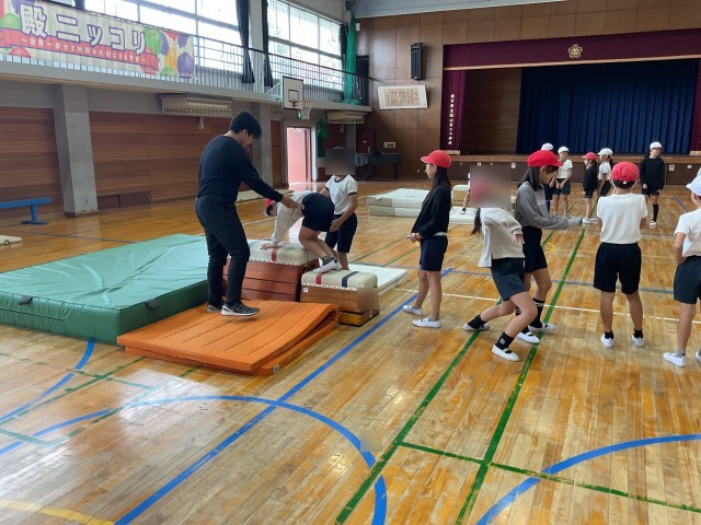 4年生が体育で跳び箱に取り組んでいます。4年生の跳び箱の目標は、「閉脚跳び」です。足を閉じて跳ぶのは、なかなか怖いものです。スモールステップを通して、みんなができるように進めていきます。
