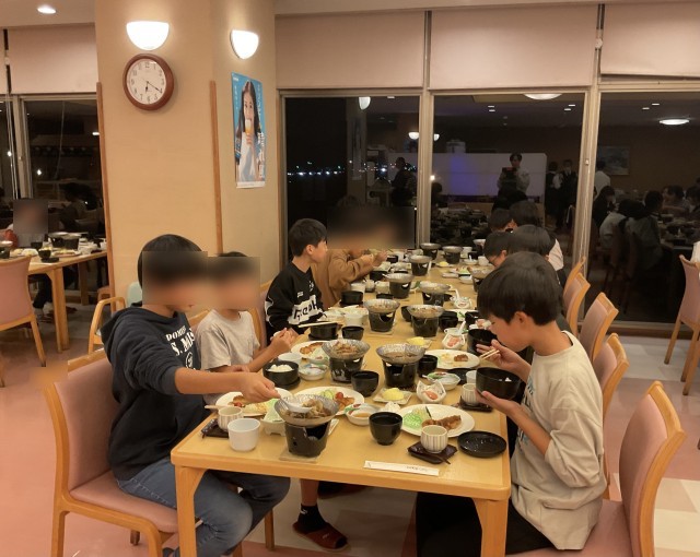宿について、美味しくご飯をいただきました。たくさん歩いて学習したのでお腹も空いていました。この後、お風呂に入ってお土産タイムです。