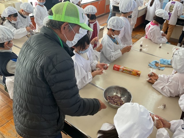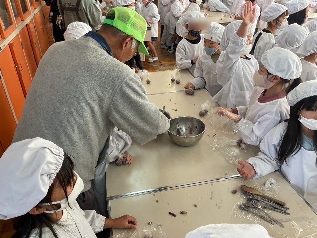 3時間目、2年生は地域の方と育てたさつまいもを料理して一緒にいただきました。蒸した芋を丸めて美味しくいただきました。地域の方も「美味しい!」と喜んでもらえました。子どもたちも満足した表情を浮かべていました。美味しくいただくには、時間をかけて大事に大事に育てないといけないということを実感したこととと思います。地域の皆様、貴重な体験をありがとうございました。