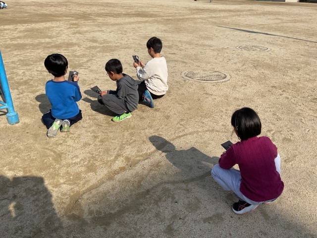3年生が運動場で日光を集めた時、どうなるのかという理科の実験を行っていました。「日光を集めたらどうなるの?」と聞くと、子どもたちはうれしそうに「すごいで、見といてや!」と実際に見せてくれました。どうすれば日光が集まるのか、煙を出すためにはどうしたらいいのか、みんなで話し合って課題に取り組んでいました。