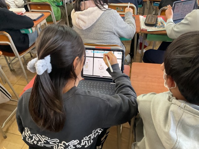 「I want to be 〜!」と元気のいい声が教室に響き渡っていました。6年生の英語の授業です。ビンゴゲームを通して、将来についてみたい職業を英語で言っていました。ビンゴゲームなので、みんな楽しみながら活動していました。