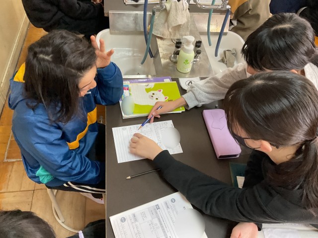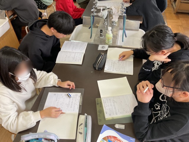 6年生が理科室で、てこが水平につり合う法則を考えていました。実験したことを思い出しながら、みんなで意見を出し合い考察からまとめまでを行いました。「○○の法則」と自分たちが見つけた決まりに名前をつけて、楽しみながら活動していました。自分で名前をつければ、理解も深まりますね。