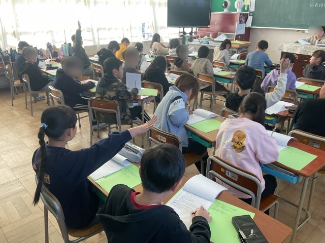 2月の参観に向けての役決めをしているクラスもありました。どのセリフをいうかを事前に一人一人が決めておいて、被った場合はじゃんけんで決めます。じゃんけんをするということに大盛り上がりでした。