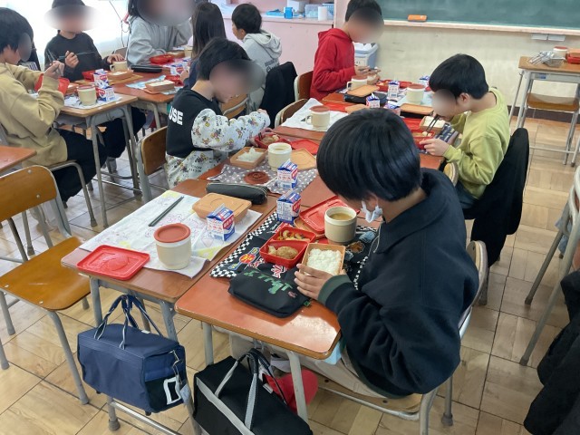 今日は、6年生の希望する保護者の方にもきていただき中学校給食の試食会を行いました。保護者の方、児童にも「あたたかくておいしい!」と好評でした。中学校に向けて、ぜひ検討していただけたらと思います。