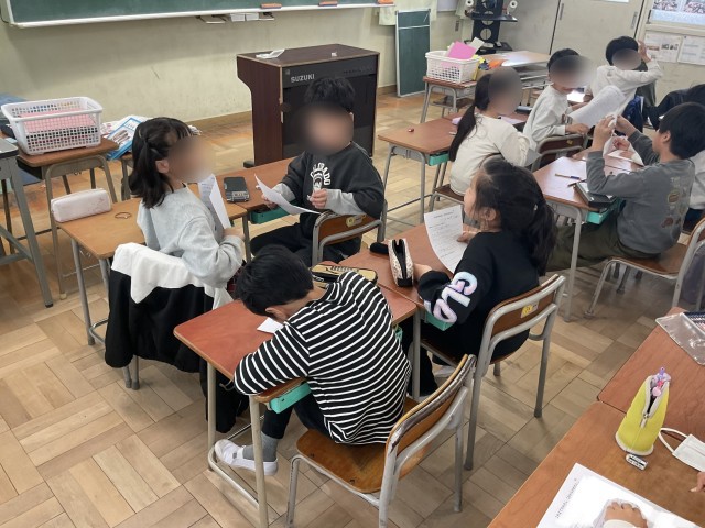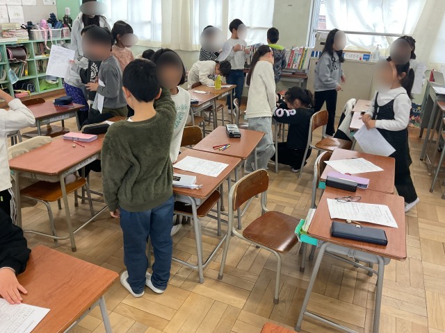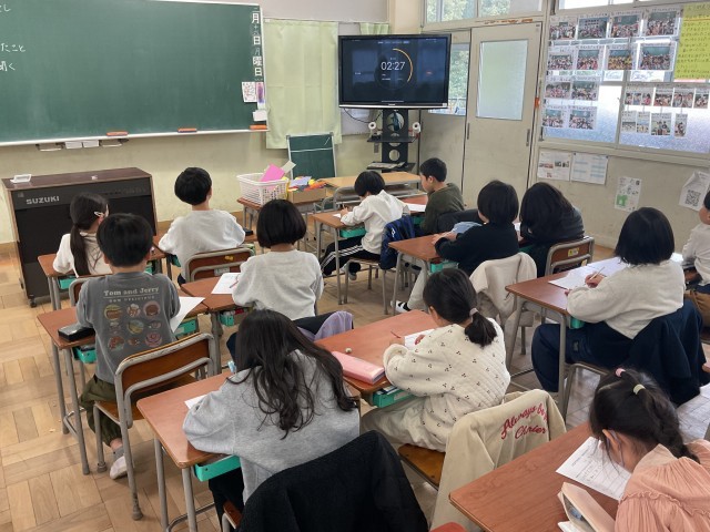 2年生の教室では、2年生になってできるようになったことを振り返っていました。みんなが書いた内容を見ていくと、1番多かったのは「かけ算」とありました。声に出したり100マスで取り組んだり、一生懸命に励んできたので記憶に残っているのだなと思いました。その後、クラスのみんなのいいとこ見つけの時間がありました。自分では気づいていないいいところを伝えてもらって、教室中にたくさんの笑顔で溢れていました。