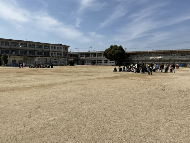 6年生が、運動場で1年生と二人三脚をしていました。1年生の肩を支えながら、1年生のペースに合わせて進む6年生。6年間で、本当に心身ともに大きく成長しました。小学校生活も明日で最後です。思い残すことなく過ごすことを願っています。