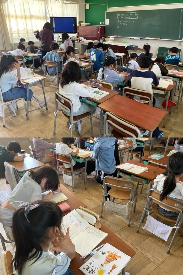 3年生は、かけ算の計算で、かける数を工夫して分解することで、10より大きい数をかけて答えを出すために、いろいろな考えを出し合って、学びを深めていました。