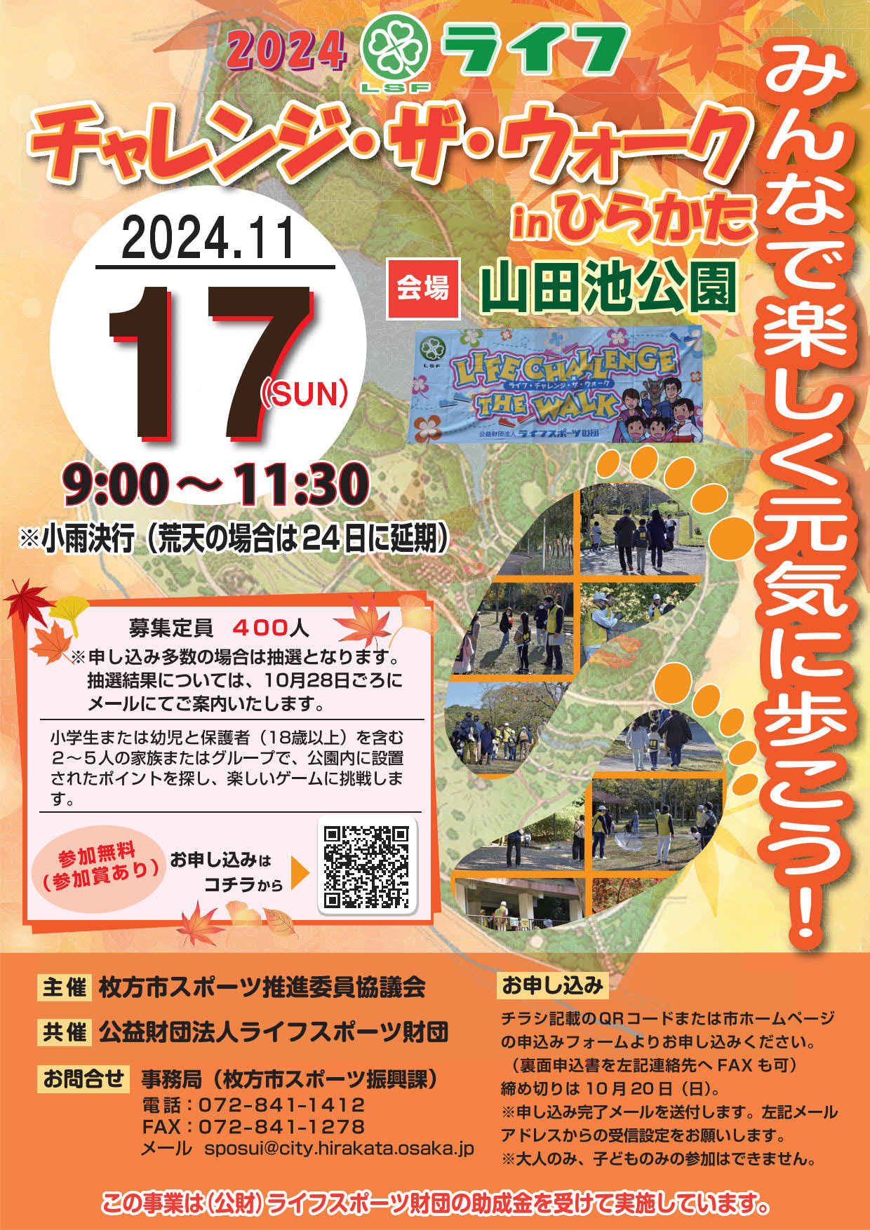 枚方市教育委員会より「チャレンジ・ザ・ウォークについて」の案内が届きました。ご確認ください。