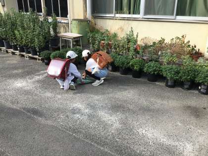 来週の10月23日から行われる枚方菊花展に向けて、4年生がドーム菊を育てていました。先週、その育てたドーム菊を展示してほしいという依頼の電話を枚方市役所に行いました。電話をした児童は緊張したけど、思いを伝えることで展示の許可をいただけたとうれしそうでした。今回、展示するにはどうしたらいいか、自分たちで考え行動することで、新しい展開が見えてきました。まずはやってみる。その一歩を4年生として踏み出せたことに意味があると思います。