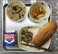今日の給食は、みんな大好き「わかめごはん」でした。
