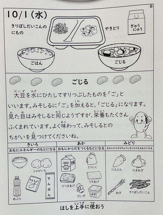 大おかずの「ごじる」は、大豆をすりつぶしたものが入っていて、
