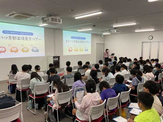 ダイハツ工場では最初は動画による説明、展示コーナーの見学。