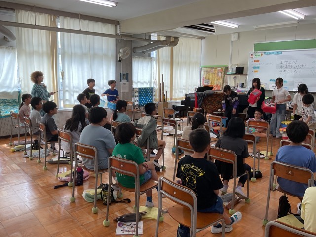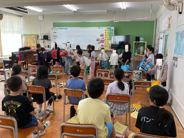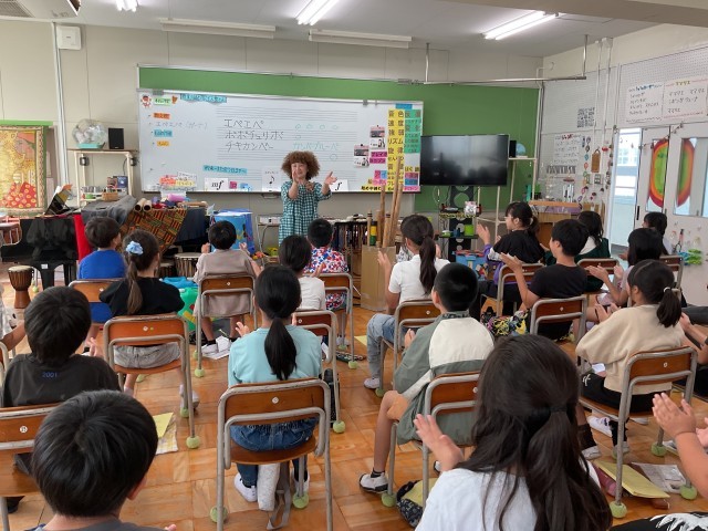 4年生 音楽 公開日 2025/10/15 更新日 2025/10/15 学校の様子 4年生の音楽です.アフリカのガーナの歌「エペエペ」を歌で掛け合ったり、手を叩いたり、エコ楽器でリズムを取ったりして、音楽に親しみます.子どもたちが、自然に掛け声を付け加えたり、リズムを打ったり、主体的に音楽を奏でます。音が響く理由や、楽器の構造にも触れ、楽しみながら、音楽を深く学びます。 +3 いいね(0)