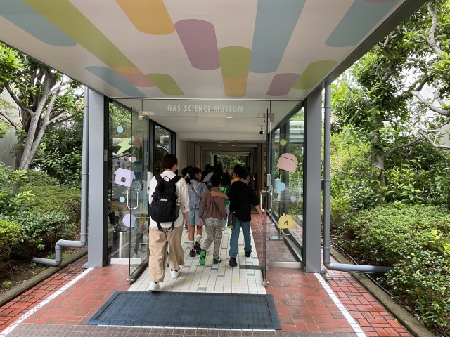 海辺の工場で、海を近くに見て、みんなワクワクしています。